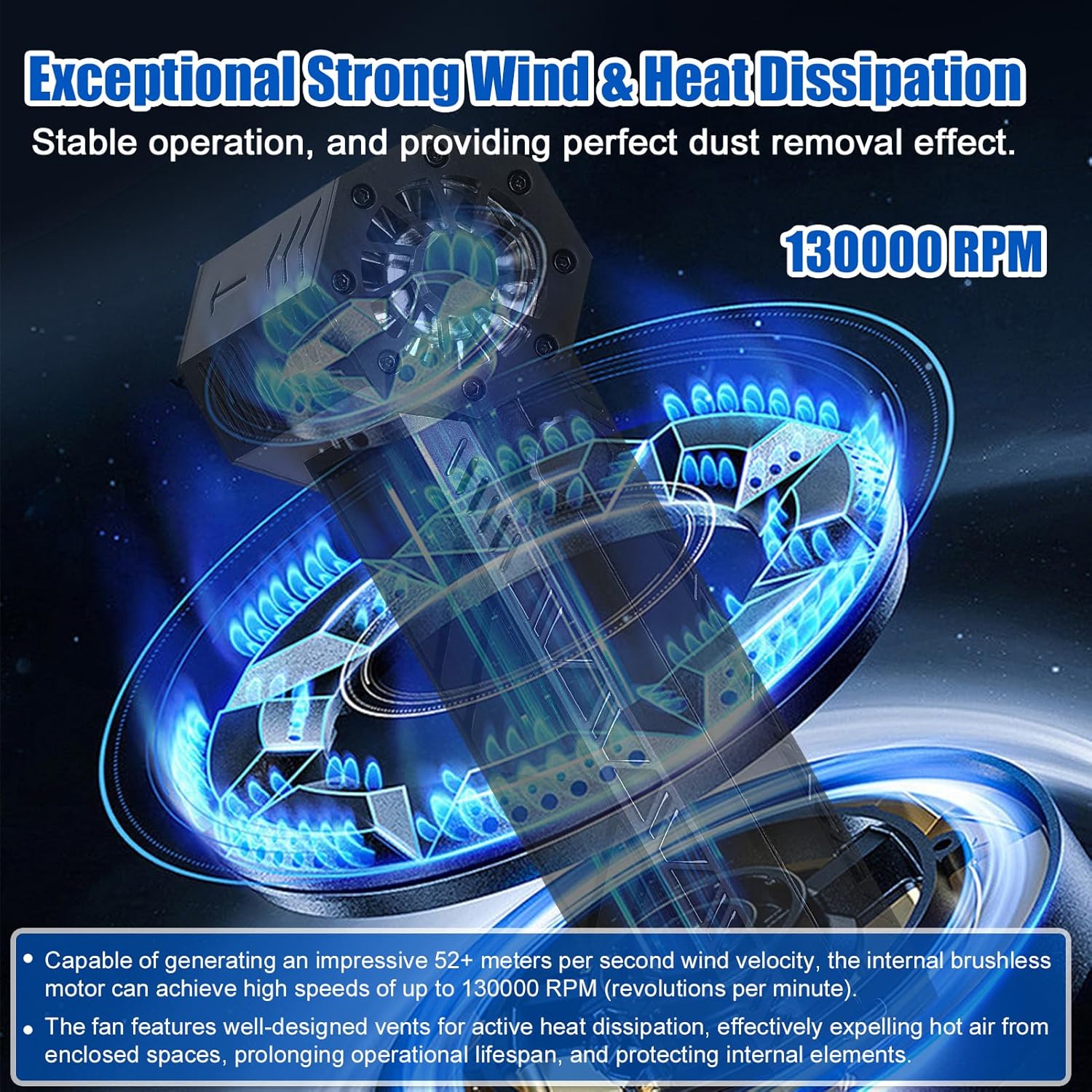 Moteur sans balais atteignant 130 000 tr/min et vitesse de vent de 52 m/s pour éliminer la poussière en profondeur et dissiper efficacement la chaleur.