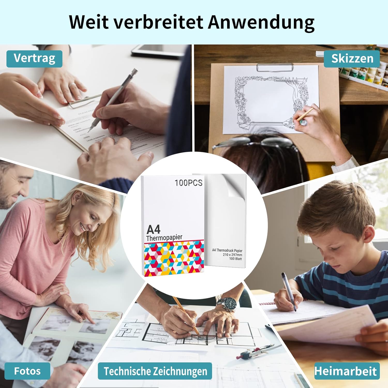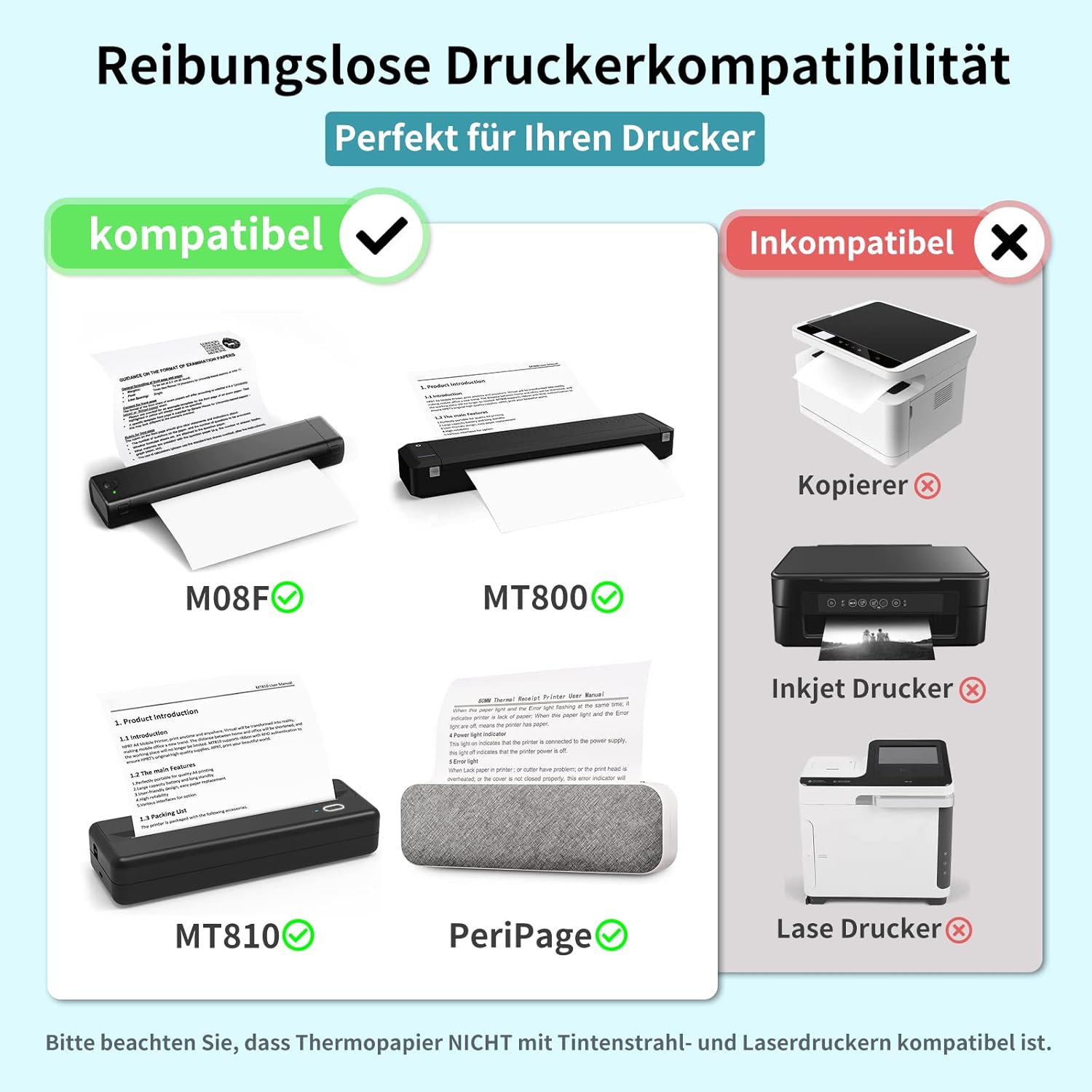 Idéal pour les imprimantes thermiques A4 telles que Phomemo M08F / M832 / M834, Brother PJ762/PJ763MFi, HPRT MT800/MT800Q, etc.